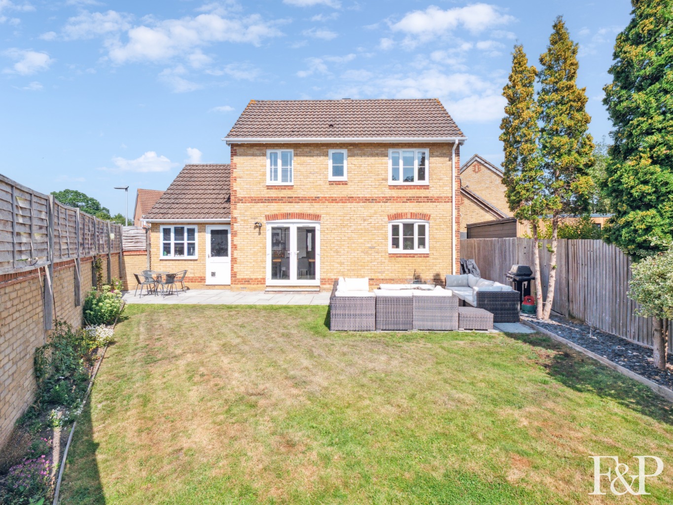 The rear garden is mainly laid to lawn but with a patio area large enough for a seating area and BBQ. Two unusual features for a house on a modern estate is the Walled Garden which gives the property an english country garden feel. It is south west facing which offers a bright and sunny space in which to relax, entertain or for children to play.