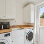The heart of the house is always the kitchen/diner and this property certainly does not disappoint. Designed to provide a large, bright space for cooking and entertaining, you can imagine plenty of fun filled events with family and friends. Ample white shaker storage units with oak worktops and a breakfast bar provide ample preparation space, whilst the dining offers ample seating for guests. There is an adjoining open plan utility room fitted in matching units. There are patio doors leading to the rear garden