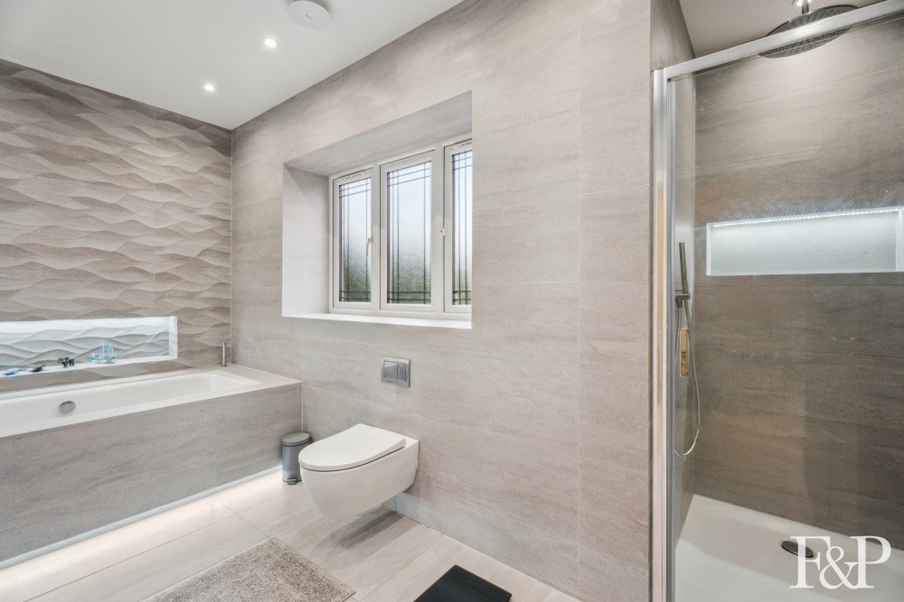The first floor hosts four generous double bedrooms, including two bathrooms, offering comfort and flexibility for family life. The second floor provides two substantial rooms, perfect for guest accommodation, a home office, or leisure use, along with a cloakroom and ample storage. Planning permission has been granted to enlarge rooms on the upper floors, creating the potential for additional bedrooms and ensuite bathrooms.