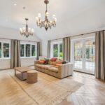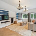The Property - This imposing five-bedroom, four-reception room family home combines timeless Tudor-style elevations with interiors designed by HAM Interiors. Bright and spacious, many rooms benefit from double or triple aspect windows. A welcoming reception hall features a dramatic two-storey picture window, filling the home with natural light and providing access to the principal reception rooms and a downstairs cloakroom. The triple-aspect drawing room is a striking space, with three sets of French doors opening onto the gardens and an old stock brick inglenook fireplace. Additional reception rooms include a study overlooking the front and a double-aspect family room with twin sets of doors to the rear garden.