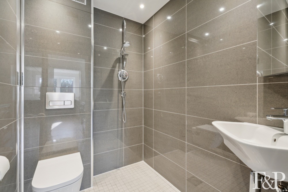 Upstairs, the first floor hosts two spacious double bedrooms, a comfortable single bedroom, and a recently refurbished family bathroom. Designed with comfort in mind, the bathroom features a Mira rainfall shower with separate thermostat control, Ideal Standard suite, a heated mirror with ambient light settings, and luxurious Warmup electric underfloor heating.