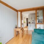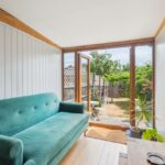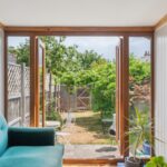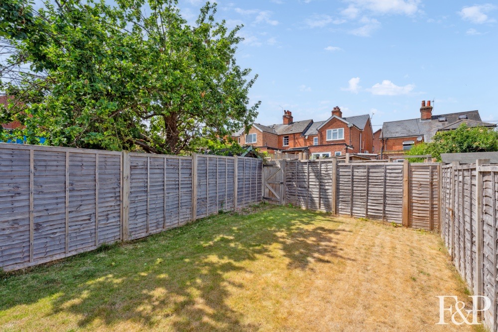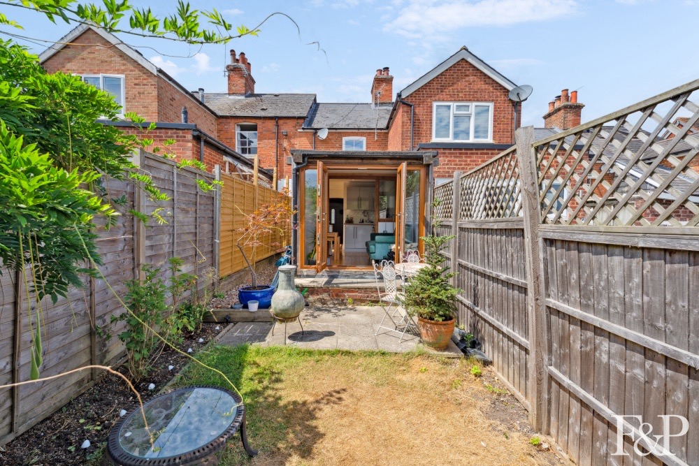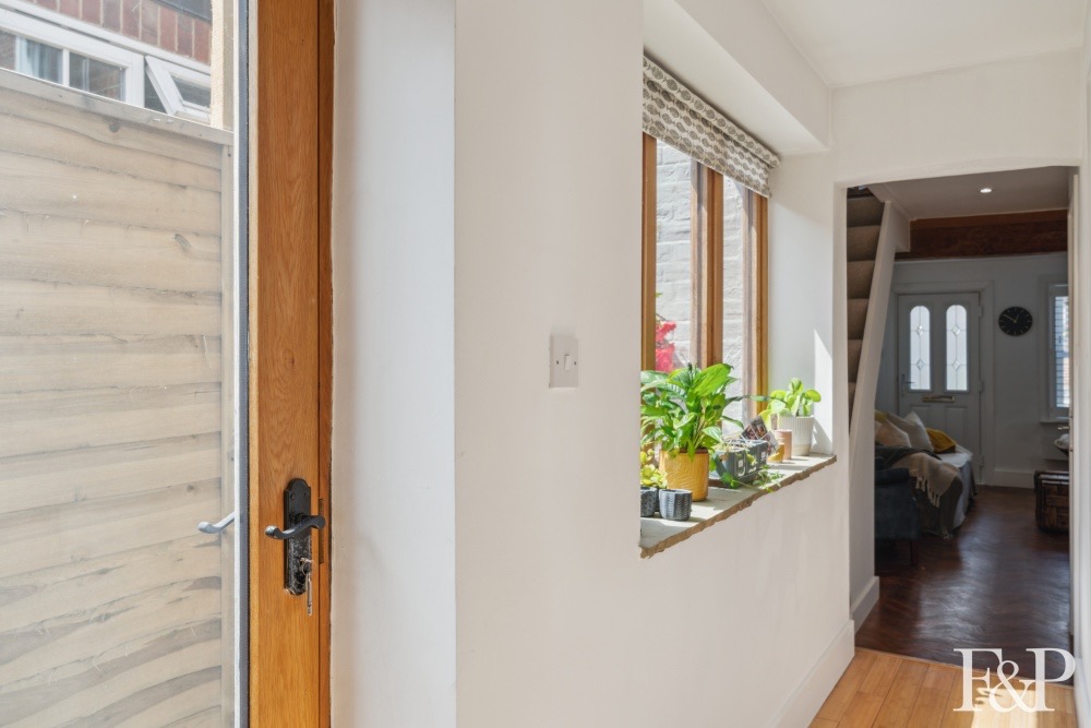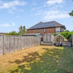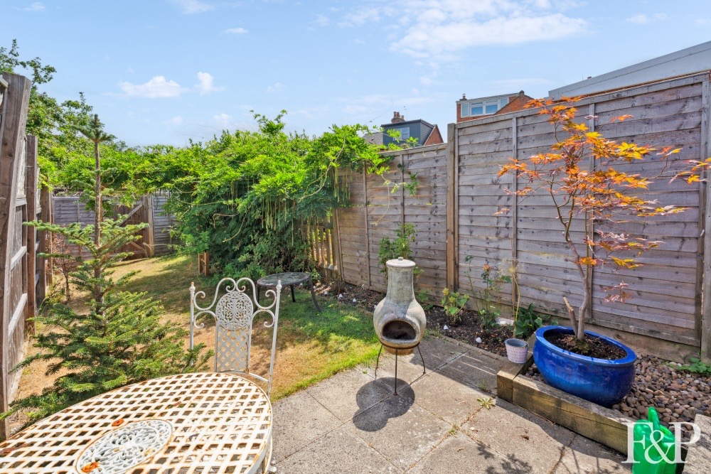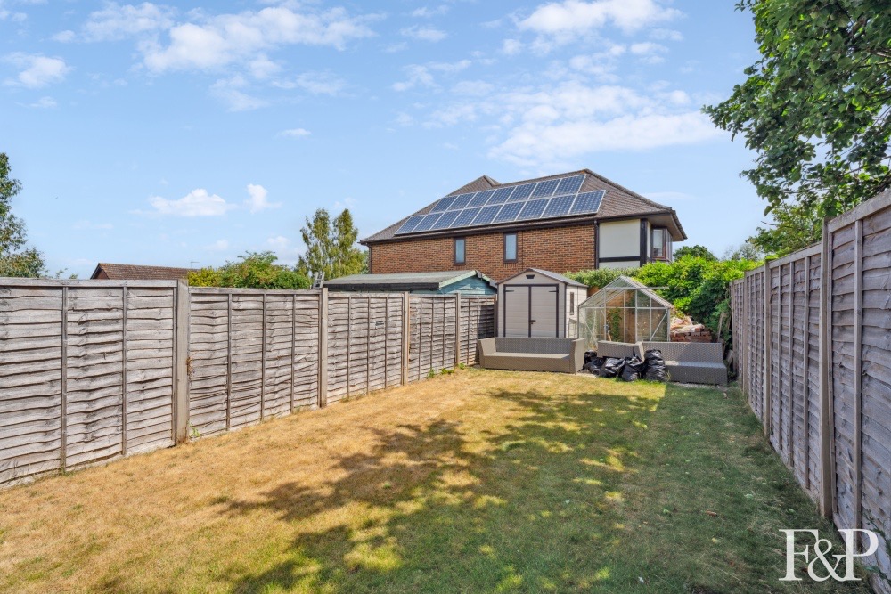 Double patio doors open onto the first of two garden spaces. The initial garden includes a paved seating area, neat lawn, and a striking purple wisteria arch. A gates leads through to a second garden, an unexpectedly generous outdoor space ideal for entertaining, relaxing or cultivating a vegetable patch. Private and rare for this style of home, the garden is a standout feature of this property.