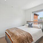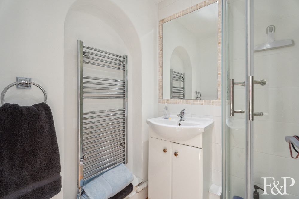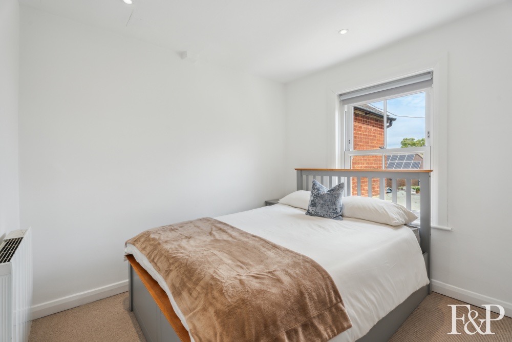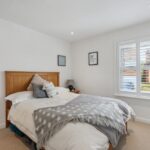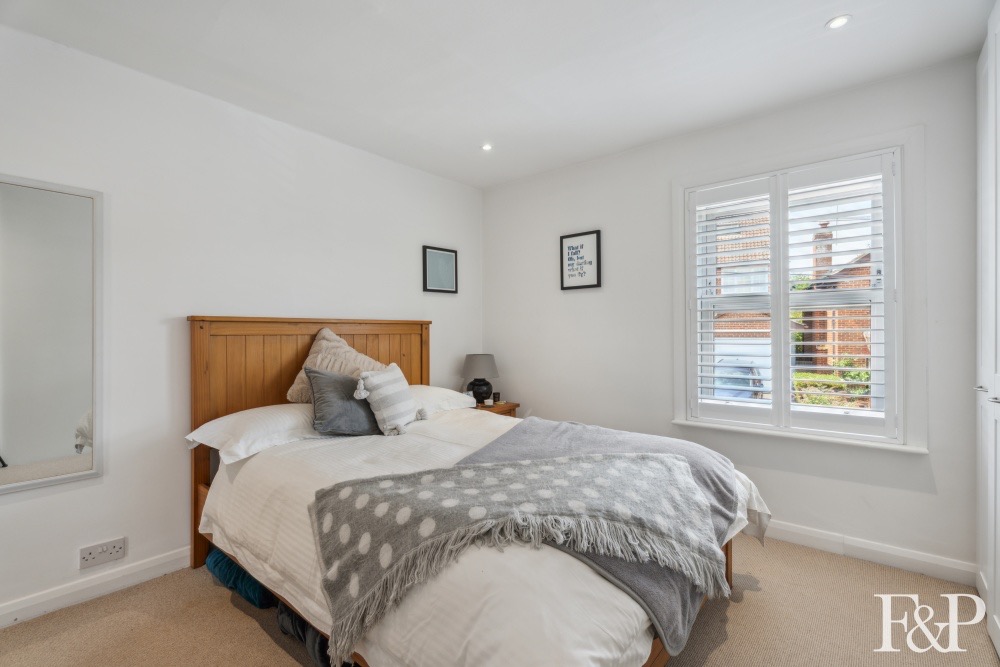 Upstairs, two well-proportioned double bedrooms offer excellent flexibility. Whether you’re a couple in need of a guest room or professional seeking a home working office space or dressing room, the layout adapts easily. White plantation shutters frame each window, enhancing the homes light and elegant appeal.