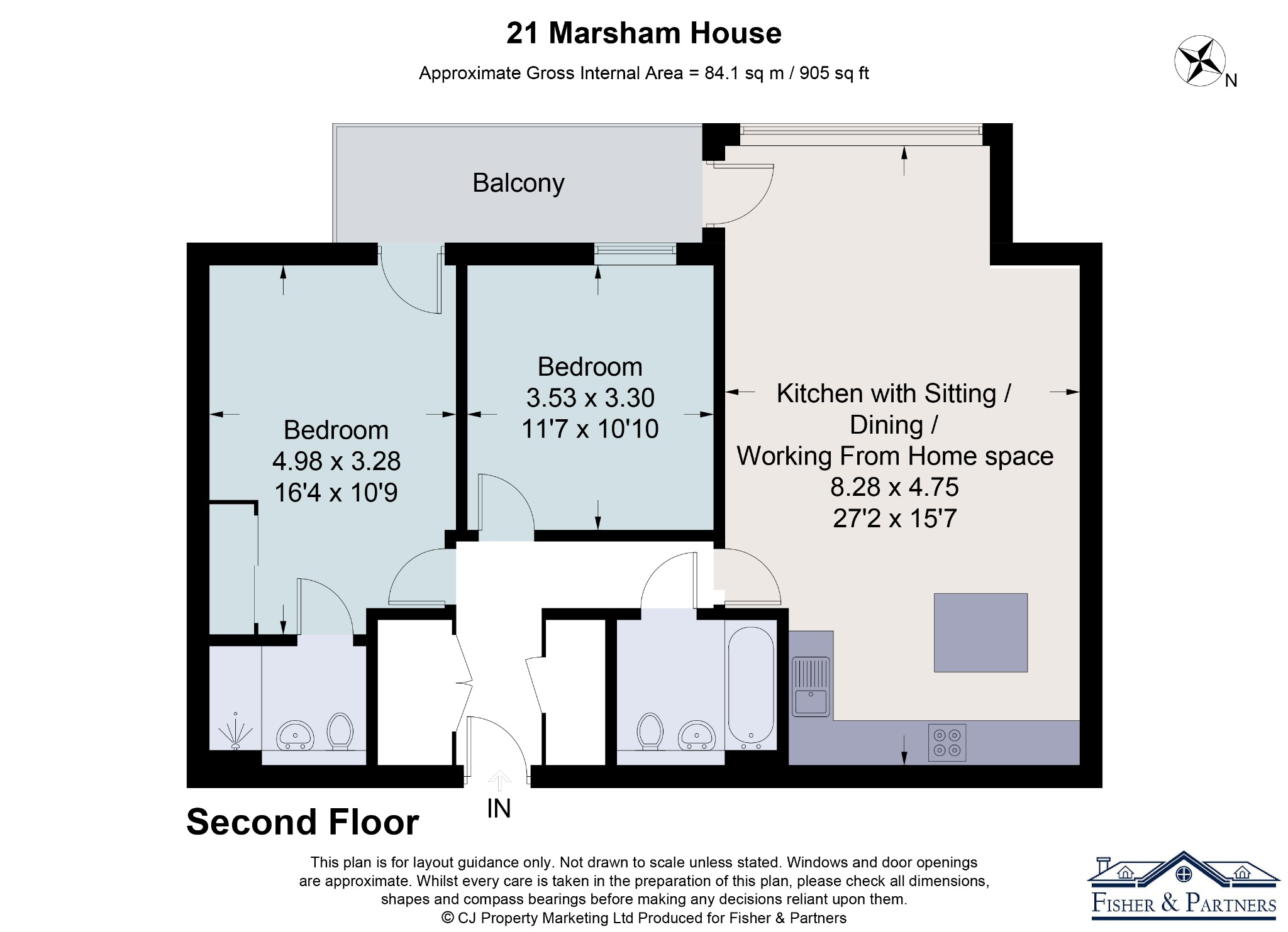 - Large private balcony with sunny aspect
