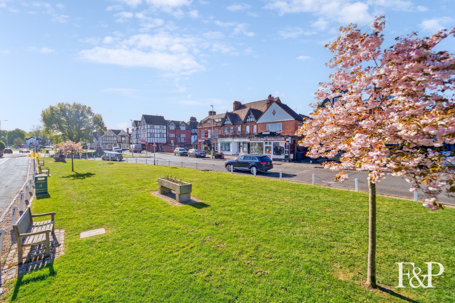 On the ground floor, a welcoming entrance hall leads into a large inner hallway. To the front are two superb reception rooms, both with bay windows offering views over the village green. To the rear, a fully fitted kitchen opens into a bright, airy dining room that overlooks the landscaped garden — a perfect space for everyday meals or hosting guests.