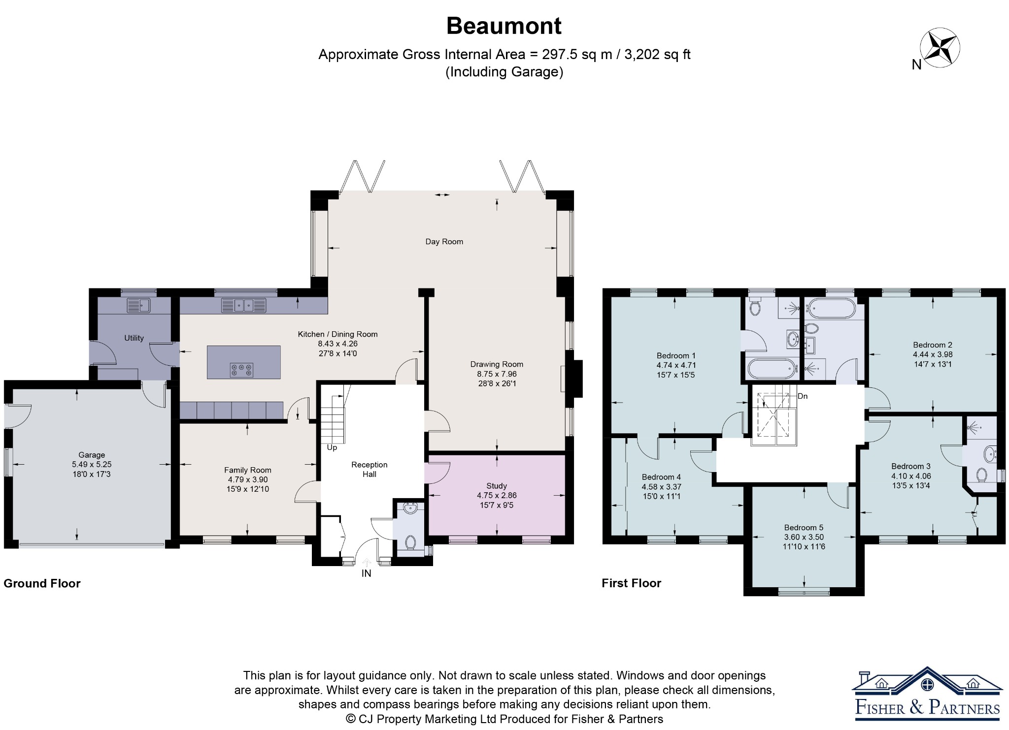 Upstairs offers a primary suite with dressing room and en-suite, plus a guest suite and two additional bedrooms (optionally up to five bedrooms) alongside a family bathroom.